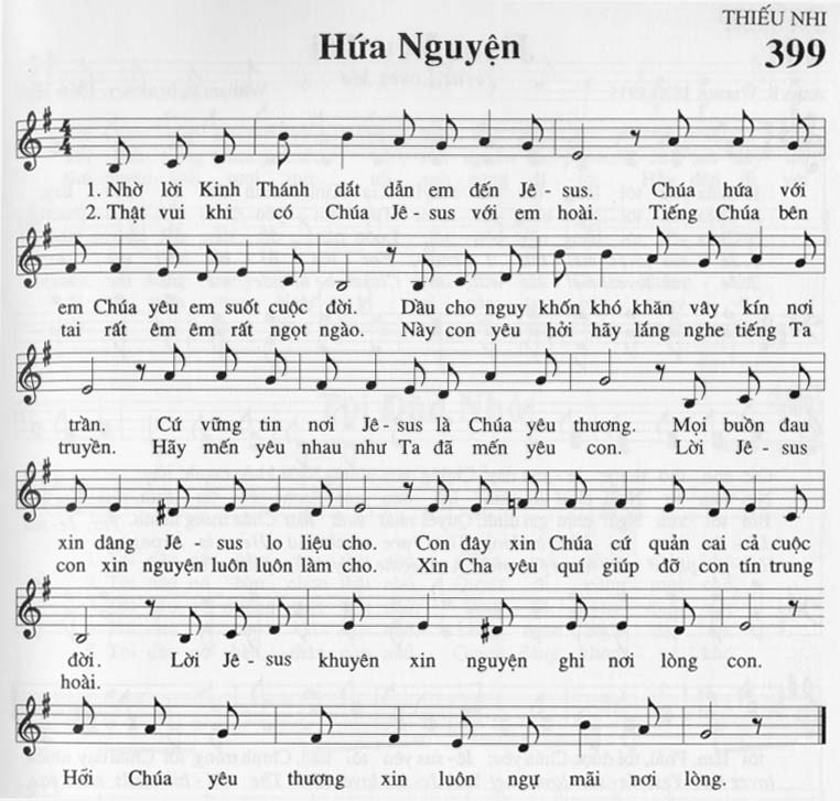 1. Nhờ lời Kinh Thánh dắt dẫn em đến Jê-sus. Chúa hứa với em Chúa yêu em suốt cuộc đời. Dầu cho nguy khốn khó khăn vây kín nơi trần. Cứ vững tin nơi Jê-sus là Chúa yêu thương. Mọi buồn đau xin dâng Jê-sus lo liệu cho. Con đây xin Chúa cứ quản cai cả cuộc đời. Lời Jê-sus khuyên xin nguyện ghi nơi lòng con. Hỡi Chúa yêu thương xin luôn ngự mãi nơi lòng. 2. Thật vui khi có Chúa Jê-sus với em hoài. Tiếng Chúa bên tai rất êm êm rất ngọt ngào. Này con yêu hỡi hãy lắng nghe tiếng Ta truyền. Hãy mến yêu nhau như Ta đã mến yêu con. Lời Jê-sus con xin nguyện luôn luôn làm cho. Xin Cha yêu quí giúp đỡ con tín trung hoài.