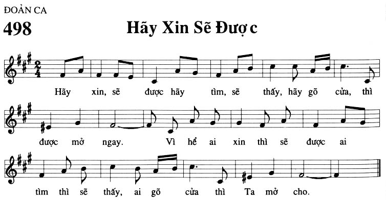 1. Hãy xin, sẽ được hãy tìm, sẽ thấy, hãy gõ cửa, thì được mở ngay. Vì hễ ai xin thì sẽ được ai tìm thì sẽ thấy, ai gõ cửa thì Ta mở cho.