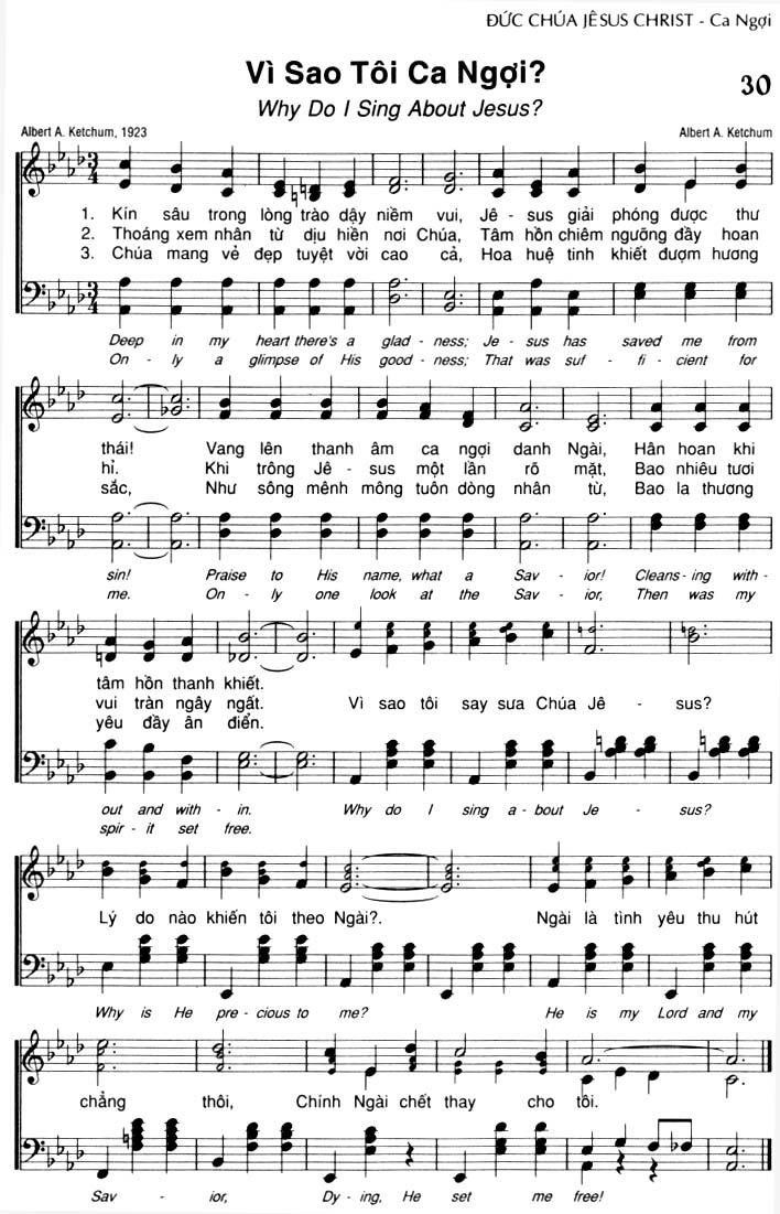 1. Kín sâu trong lòng trào dậy niềm vui, Jê-sus giải phóng được thư thái! Vang lên thanh âm ca ngợi danh Ngài, Hân hoan khi tâm hồn thanh khiết. Vì sao tôi say sưa Chúa Jê-sus? Lý do nào khiến tôi theo Ngài?. Ngài là tình yêu thu hút chẳng thôi, Chính Ngài chết thay cho tôi. 2. Thoáng xem nhân từ dịu hiền nơi Chúa, Tâm hồn chiêm ngưỡng đầy hoan hỉ. Khi trông Jê-sus một lần rõ mặt, Bao nhiêu tươi vui tràn ngây ngất. Vì sao tôi say sưa Chúa Jê-sus? Lý do nào khiến tôi theo Ngài?. Ngài là tình yêu thu hút chẳng thôi, Chính Ngài chết thay cho tôi. 3. Chúa mang vẻ đẹp tuyệt vời cao cả, Hoa huệ tinh khiết đượm hương sắc, Như sông mênh mông tuôn dòng nhân từ, Bao la thương yêu đầy ân điển. Vì sao tôi say sưa Chúa Jê-sus? Lý do nào khiến tôi theo Ngài?. Ngài là tình yêu thu hút chẳng thôi, Chính Ngài chết thay cho tôi.