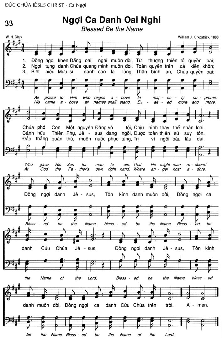 1. Đồng ngợi khen Đấng oai nghi muôn đời, Từ thượng thiên tỏ quyền oai; Chúa phó Con Một nguyên Đấng vô tội, Chịu hình thay thế nhân loại. 2. Ngợi tụng danh Chúa quang minh muôn đời, Toàn quyền trên cả kiền khôn; Cánh hữu Thiên Phụ, Jê sus đang ngồi, Được toàn thiên sứ suy tôn. 3. Biệt hiệu Mưu sĩ danh cao lạ lùng, Thần bình an, Chúa quyền oai; Đắc thắng quân thù, muôn nước phục tùng, Trị vì ngôi báu lâu dài. Điệp khúc: Đồng ngợi danh Jê sus, Tôn kính danh muôn đời, Đồng ngợi ca danh Cứu Chúa Jê sus, Đồng ngợi danh Jê sus, Tôn kính danh muôn đời, Đồng ngợi ca danh Cứu Chúa trên trời. A-men.
