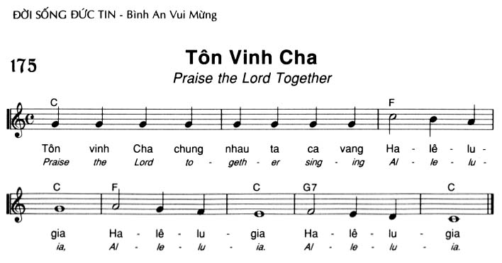 Điệp khúc: Tôn vinh Cha chung nhau ta ca vang Ha-lê-lu-gia, Ha-lê-lu-gia.