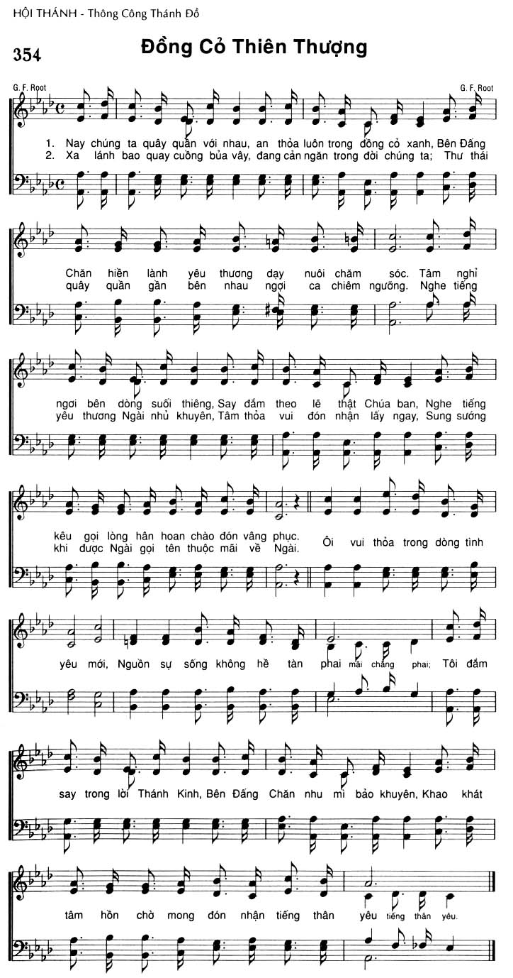 1. Nay chúng ta quây quần với nhau, an thỏa luôn trong đồng cỏ xanh, Bên Đấng Chăn hiền lành yêu thương dạy nuôi chăm sóc. Tâm nghỉ ngơi bên dòng suối thiêng, Say đắm theo lẽ thật Chúa ban, Nghe tiếng kêu gọi lòng hân hoan chào đón vâng phục. Ôi vui thỏa trong dòng tình yêu mới, Nguồn sự sống không hề tàn phai mãi chẳng phai: Tôi đắm say trong lời Thánh Kinh, Bên Đấng Chăn nhu mì bảo khuyên, Khao khát tâm hồn chờ mong đón nhận tiếng thân yêu tiếng thân yêu. 2. Xa lánh bao quay cuồng bủa vây, đang cản ngăn trong đời chúng ta; Thư thái quây quần gần bên nhau ngợi ca chiêm ngưỡng. Nghe tiếng yêu thương Ngài nhủ khuyên, Tâm thỏa vui đón nhận lấy ngay, Sung sướng khi được Ngài gọi tên thuộc mãi về Ngài.