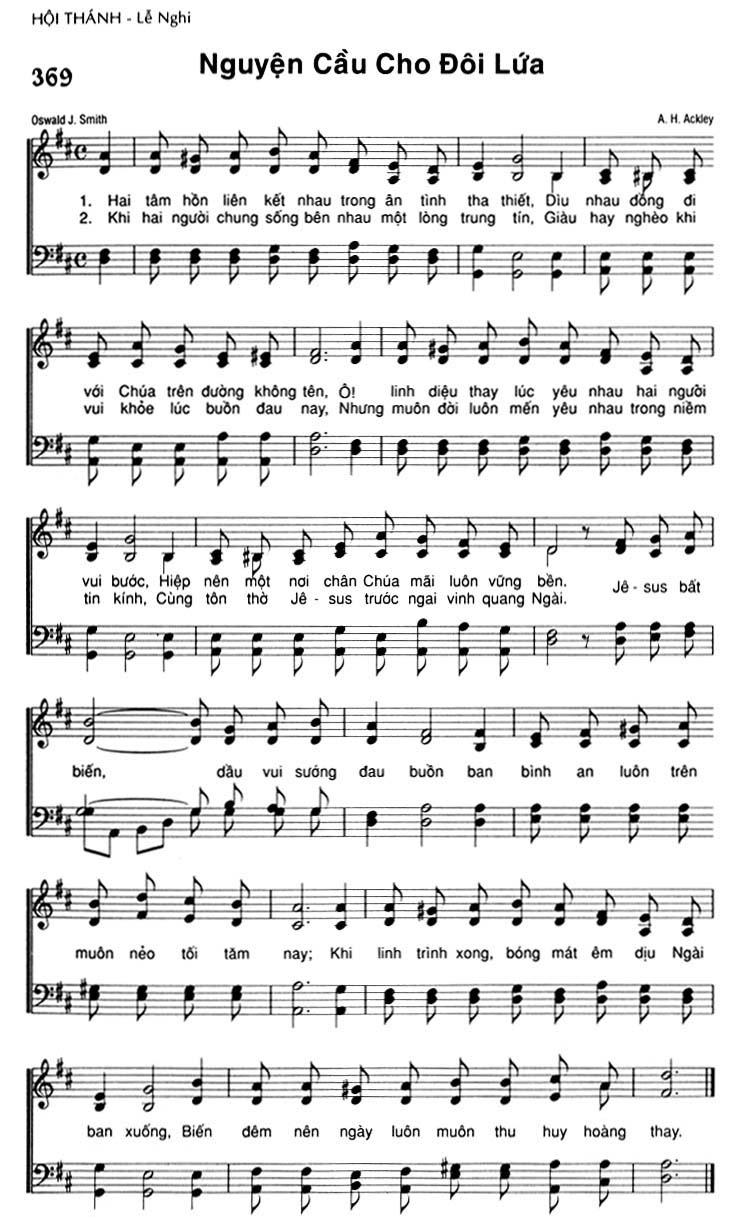 1. Hai tâm hồn liên kết nhau trong ân tình tha thiết, Dìu nhau đồng đi với Chúa trên đường không tên, Ô! linh diệu thay lúc yêu nhau hai người vui bước, Hiệp nên một nơi chân Chúa mãi luôn vững bền. Jêsus bất biến, dầu vui sướng đau buồn ban bình an luôn trên muôn nẻo tối tăm nay; Khi linh trình xong, bóng mát êm dịu Ngài ban xuống, Biến đêm nên ngày luôn muôn thu huy hoàng thay. 2. Khi hai người chung sống bên nhau một lòng trung tín, Giàu hay nghèo khi vui khỏe lúc buồn đau nay, Nhưng muôn đời luôn mến yêu nhau trong niềm tin kính, Cùng tôn thờ Jêsus trước ngai vinh quang Ngài. Jêsus bất biến, dầu vui sướng đau buồn ban bình an luôn trên muôn nẻo tối tăm nay; Khi linh trình xong, bóng mát êm dịu Ngài ban xuống, Biến đêm nên ngày luôn muôn thu huy hoàng thay.