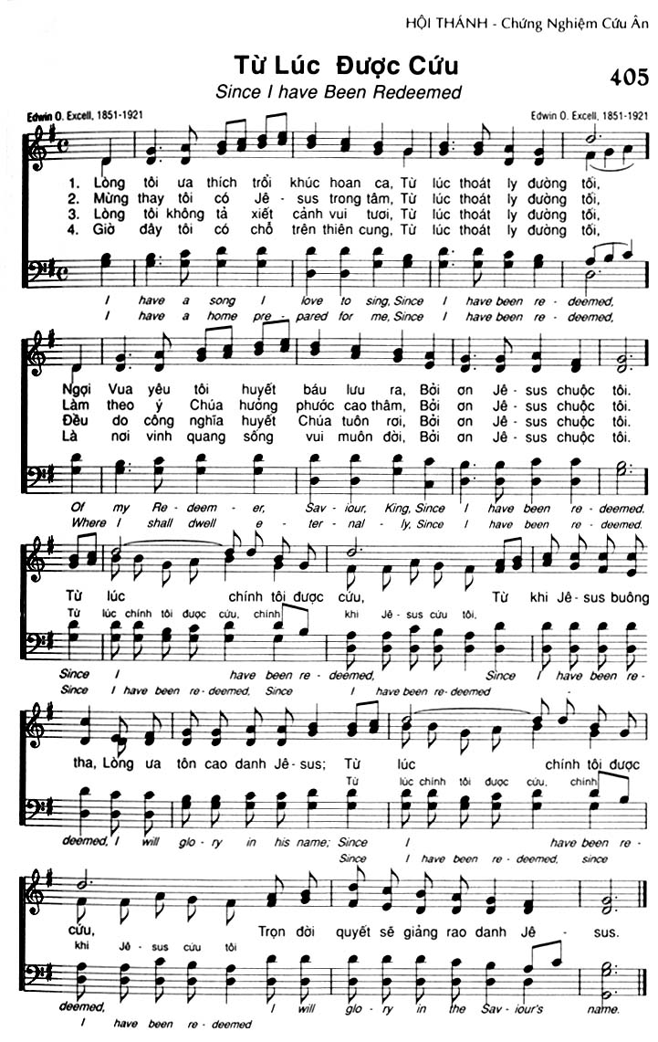 1. Lòng tôi ưa thích trỗi khúc hoan ca, Từ lúc thoát ly đường tối, Ngợi Vua yêu tôi huyết báu lưu ra, Bởi ơn Jê-sus chuộc tôi. 2. Mừng thay tôi có Jê-sus trong tâm, Từ lúc thoát ly đường tối, Làm theo ý Chúa hưởng phước cao thâm, Bởi ơn Jê-sus chuộc tôi. 3. Lòng tôi không tả xiết cảnh vui tươi, Từ lúc thoát ly đường tối, Đều do công nghĩa huyết Chúa tuôn rơi, Bởi ơn Jê-sus chuộc tôi. 4. Giờ đây tôi có chỗ trên thiên cung, Từ lúc thoát ly đường tối, Là nơi vinh quang sống vui muôn đời, Bởi ơn Jê-sus chuộc tôi. Điệp khúc: Từ lúc chính tôi được cứu, khi Jê-sus cứu tôi, Từ khi Jê-sus buông tha, Lòng ưa tôn cao danh Jê-sus; Từ lúc chính tôi được cứu, chính khi Jê-sus cứu tôi, Trọn đời quyết sẽ giảng rao danh Jê-sus.