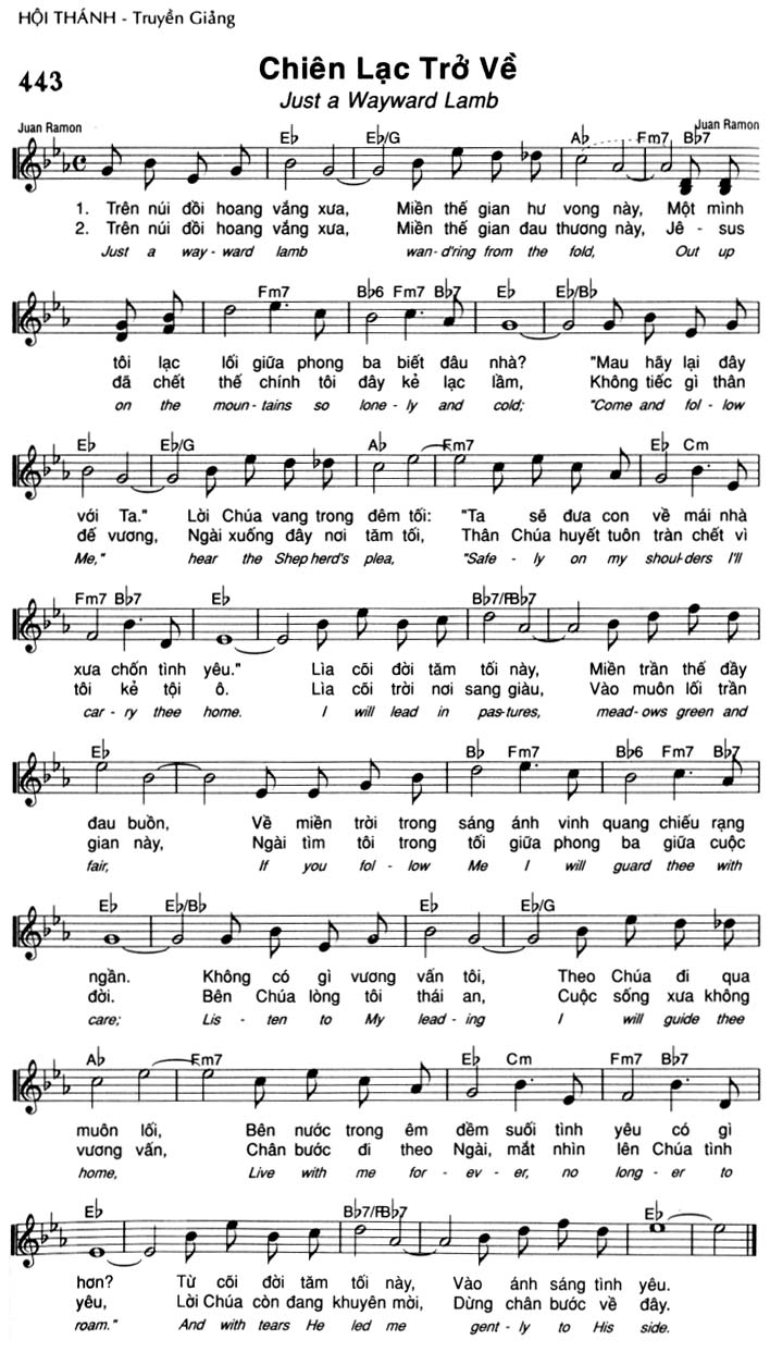 1. Trên núi đồi hoang vắng xưa, Miền thế gian hư vong này, tôi lạc lối giữa phong ba biết đâu nhà? "Mau hãy lại đây với Ta." Lời Chúa vang trong đêm tối: "Ta sẽ đưa con về mái nhà xưa chốn tình yêu." Lìa cõi đời tăm tối này, Miền trần thế đầy đau buồn, Về miền trời trong sáng ánh vinh quang chiếu rạng ngần. Không có gì vương vấn tôi, Theo Chúa đi qua muôn lối, Bên nước trong êm đềm suối tình yêu có gì hơn? Từ cõi đời tăm tối này, Vào ánh sáng tình yêu. 2. Trên núi đồi hoang vắng xưa, Miền thế gian đau thương này, đã chết thế chính tôi đây kẻ lạc lầm, Không tiếc gì thân để vương, Ngài xuống đây nơi tăm tối, Thân Chúa huyết tuôn tràn chết vì tôi kẻ tội ô. Lìa cõi trời nơi sang giàu, Vào muôn lối trần gian này, Ngài tìm tôi trong tối giữa phong ba giữa cuộc đời. Bên Chúa lòng tôi thái an, Cuộc sống xưa không vương vấn, Chân bước đi theo Ngài, mắt nhìn lên Chúa tình yêu, Lời Chúa còn đang khuyên mời, Dừng chân bước về đây.