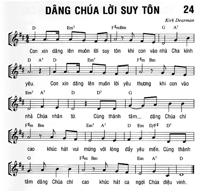 1. Con xin dâng lên muôn lời suy tôn khi con vào nhà Cha kính yêu. Con xin dâng lên muôn lời yêu thương khi con vào nhà Chúa nhân từ. Cùng thành tâm dâng Chúa chí cao khúc hát vui mừng với lòng đầy yêu mến. Cùng thành tâm dâng Chúa chí cao khúc hát ca ngợi Chúa diệu vinh.