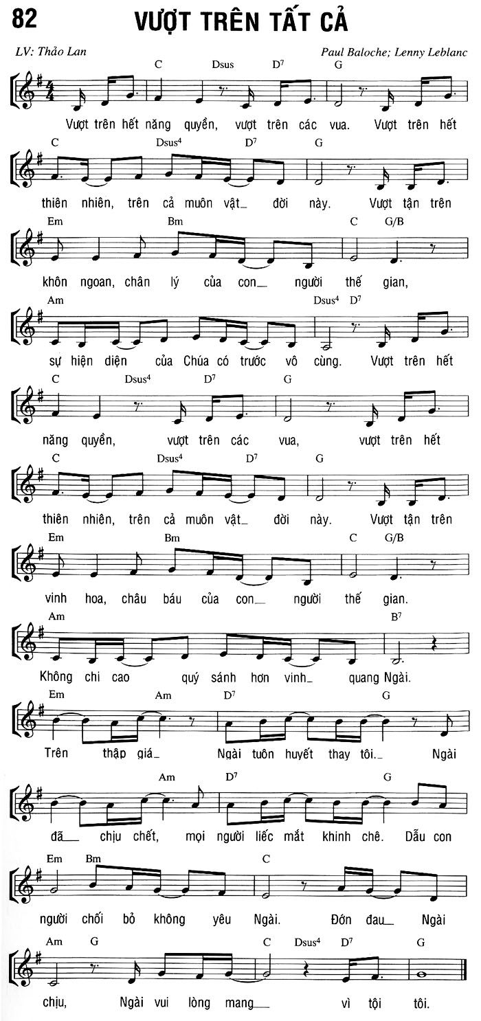 1. Vượt trên hết năng quyền, vượt trên các vua. Vượt trên hết thiên nhiên, trên cả muôn vật đời này. Vượt tận trên khôn ngoan, chân lý của con người thế gian, sự hiện diện của Chúa có trước vô cùng. 2. Vượt trên hết năng quyền, vượt trên các vua, vượt trên hết thiên nhiên, trên cả muôn vật đời này. Vượt tận trên vinh hoa, châu báu của con người thế gian. Không chi cao quý sánh hơn vinh quang Ngài. Trên thập giá Ngài tuôn huyết thay tôi. Ngài đã chịu chết, mọi người liếc mắt khinh chê. Dẫu con người chối bỏ không yêu Ngài. Đớn đau Ngài chịu, Ngài vui lòng mang vì tội tôi.