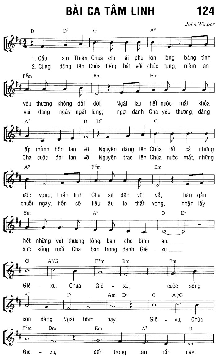 1. Cầu xin Thiên Chúa chí ái phủ kín lòng bằng tình yêu thương không đổi đời, Ngài lau hết nước mắt khỏa lấp mảnh hồn tan vỡ. Nguyện dâng lên Chúa tất cả những ước vọng, Thần linh Cha sẽ đến vỗ về, hàn gắn hết những vết thương lòng, ban cho bình an. 2. Cùng dâng lên Chúa tiếng hát với chúc tụng, niềm an vui đang ngây ngất lòng; ngợi danh Cha yêu thương, dâng Cha cuộc đời tan vỡ. Nguyện trao lên Chúa nước mắt, những chuỗi ngày, hồn cô liêu âu lo thất vọng, nhận lấy sức sống mới Cha ban trong danh Giê-xu. Điệp khúc: Chúa Giê-xu, cuộc sống con dâng Ngài hôm nay. Giê-xu, Chúa Giê-xu, đến trong tâm hồn này.