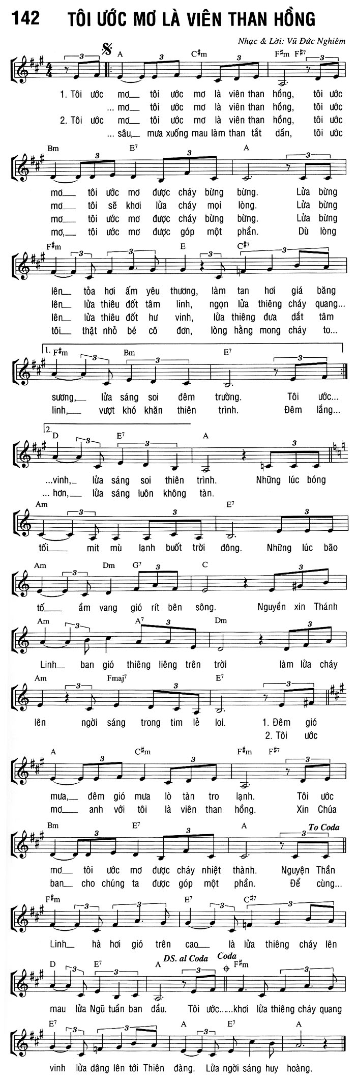 1. Tôi ước mơ tôi ước mơ là viên than hồng, tôi ước mơ tôi ước mơ được cháy bừng bừng. Lửa bừng lên tỏa hơi ấm yêu thương, làm tan hơi giá băng sương, lửa sáng soi đêm trường. Tôi ước... Những lúc bóng tối mit mù lanh buốt trời đông. Những lúc bão tố ầm vang gió rít bên sông. Nguyền xin Thánh Linh ban gió thiêng liêng trên trời làm lửa cháy lên người sáng trong tim lẻ loi. Đêm gió mưa, đêm gió mưa lò tàn tro lạnh. Tôi ước mơ tôi ước mơ được cháy nhiệt thành. Nguyện Thần Linh hà hơi gió trên cao là lửa thiêng cháy lên mau lửa Ngũ tuần ban đầu. Tôi ước......khơi lửa thiêng cháy quang vinh lửa dâng lên tới Thiên đàng. Lửa ngời sáng huy hoàng. 2. Tôi ước mơ tôi ước mơ là viên than hồng, tôi ước mơ tôi sẽ khơi lửa cháy mọi lòng. Lửa bừng lên lửa thiêu đốt tâm linh, ngọn lửa thiêng cháy quang... linh, vượt khó khăn thiên trình. Đêm lắng... hơn, lửa sáng luôn không tàn. Tôi ước mơ tôi ước mơ là viên than hồng, tôi ước mơ anh với tôi là viên than hồng. Xin Chúa ban cho chúng ta được góp một phần. Để cùng... Tôi ước......khơi lửa thiêng cháy quang vinh lửa dâng lên tới Thiên đàng. Lửa ngời sáng huy hoàng.