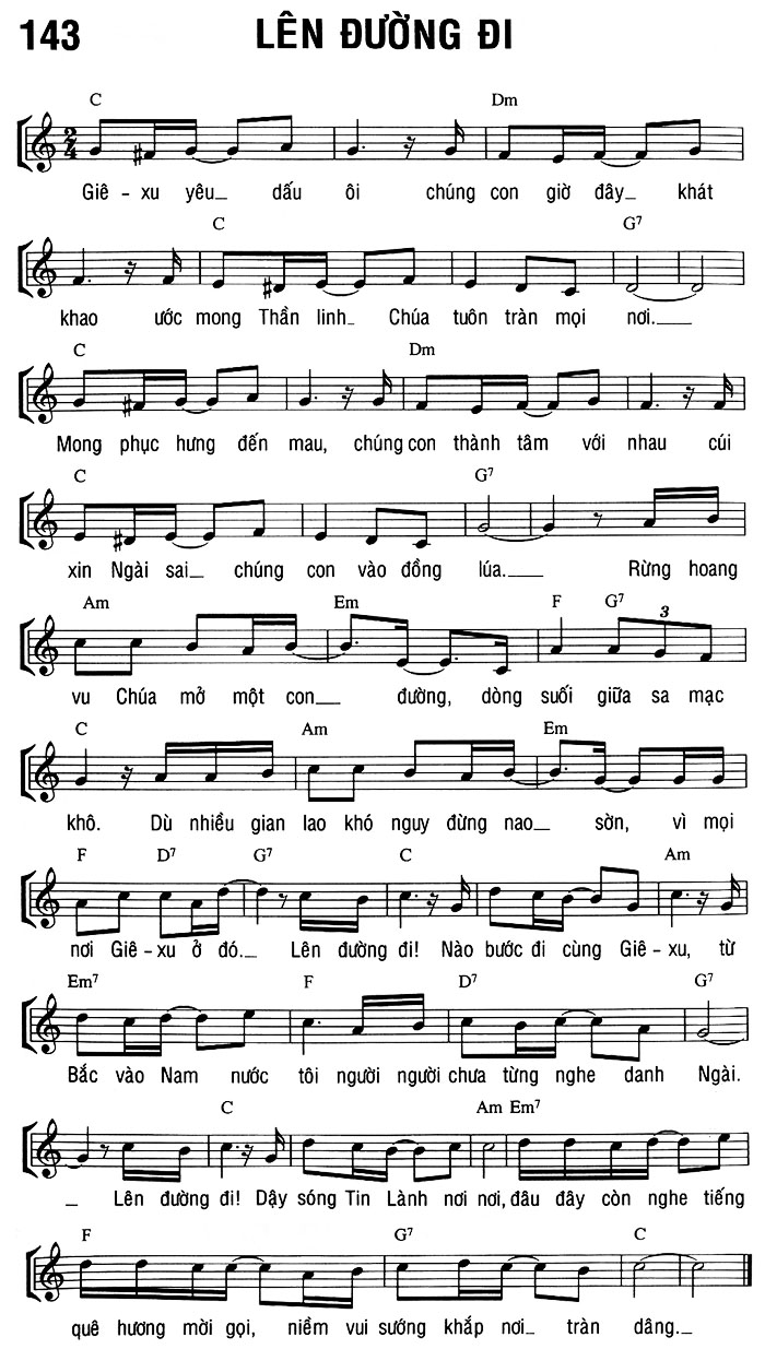 1. Giê-xu yêu dấu ôi chúng con giờ đây khát khao ước mong Thần linh Chúa tuôn tràn mọi nơi. Mong phục hưng đến mau, chúng con thành tâm với nhau cúi xin Ngài sai chúng con vào đồng lúa. Rừng hoang vu Chúa mở một con đường, dòng suối giữa sa mạc khô. Dù nhiều gian lao khó nguy đừng nao sờn, vì mọi nơi Giê-xu ở đó. Lên đường đi! Nào bước đi cùng Giê-xu, từ Bắc vào Nam nước tôi người người chưa từng nghe danh Ngài. Lên đường đi! Dậy sóng Tin Lành nơi nơi, đâu đây còn nghe tiếng quê hương mời gọi, niềm vui sướng khắp nơi tràn dâng.