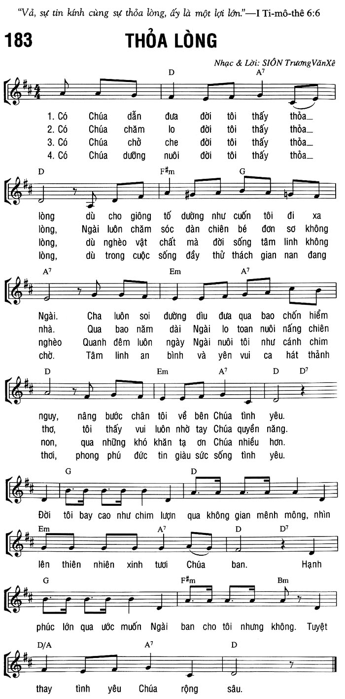 1. Có Chúa dẫn đưa đời tôi thấy thỏa lòng dù cho giông tố dường như cuốn tôi đi xa Ngài. Cha luôn soi đường dìu đưa qua bao chốn hiểm nguy, nâng bước chân tôi về bên Chúa tình yêu. Đời tôi bay cao như chim lượn qua không gian mênh mông, nhìn lên thiên nhiên xinh tươi Chúa ban. Hạnh phúc lớn qua ước muốn Ngài ban cho tôi nhưng không. Tuyệt thay tình yêu Chúa rộng sâu. 2. Có Chúa chăm lo đời tôi thấy thỏa lòng, Ngài luôn chăm sóc đàn chiên bé đơn sơ không nhà. Qua bao năm dài Ngài lo toan nuôi nấng chiên thơ, tôi thấy vui luôn nhờ tay Chúa quyền năng. Đời tôi bay cao như chim lượn qua không gian mênh mông, nhìn lên thiên nhiên xinh tươi Chúa ban. Hạnh phúc lớn qua ước muốn Ngài ban cho tôi nhưng không. Tuyệt thay tình yêu Chúa rộng sâu. 3. Có Chúa chở che đời tôi thấy thỏa lòng, dù nghèo vật chất mà đời sống tâm linh không nghèo. Quanh đêm luôn ngày Ngài nuôi tôi như cánh chim non, qua những khó khăn tạ ơn Chúa nhiều hơn. Đời tôi bay cao như chim lượn qua không gian mênh mông, nhìn lên thiên nhiên xinh tươi Chúa ban. Hạnh phúc lớn qua ước muốn Ngài ban cho tôi nhưng không. Tuyệt thay tình yêu Chúa rộng sâu. 4. Có Chúa dưỡng nuôi đời tôi thấy thỏa lòng, dù trong cuộc sống đầy thử thách gian nan đang chờ. Tâm linh an bình và yên vui ca hát thảnh thơi, phong phú đức tin giàu sức sống tình yêu. Đời tôi bay cao như chim lượn qua không gian mênh mông, nhìn lên thiên nhiên xinh tươi Chúa ban. Hạnh phúc lớn qua ước muốn Ngài ban cho tôi nhưng không. Tuyệt thay tình yêu Chúa rộng sâu.