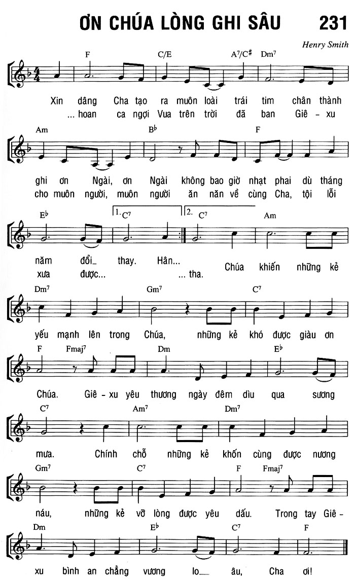 1. Xin dâng Cha tạo ra muôn loài trái tim chân thành ghi ơn Ngài, ơn Ngài không bao giờ nhạt phai dù tháng năm đổi thay. Hân Chúa khiến những kẻ yếu mạnh lên trong Chúa, những kẻ khó được giàu ơn Chúa. Giê-xu yêu thương ngày đêm dìu qua sương mưa. Chính chỗ những kẻ khốn cùng được nương náu, những kẻ vỡ lòng được yêu dấu. Trong tay Giê-xu bình an chẳng vương lo âu, Cha ơi! 2. ... hoan ca ngợi Vua trên trời đã ban Giê-xu cho muôn người, muôn người ăn năn về cùng Cha, tội lỗi xưa được... tha. Chúa khiến những kẻ yếu mạnh lên trong Chúa, những kẻ khó được giàu ơn Chúa. Giê-xu yêu thương ngày đêm dìu qua sương mưa. Chính chỗ những kẻ khốn cùng được nương náu, những kẻ vỡ lòng được yêu dấu. Trong tay Giê-xu bình an chẳng vương lo âu, Cha ơi!