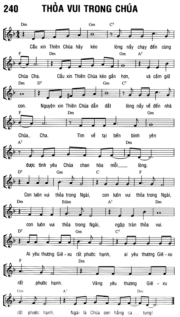 1. Cầu xin Thiên Chúa hãy kéo lòng nầy chạy đến cùng Chúa Cha. Cầu xin Thiên Chúa kéo gần hơn, và cầm giữ con. Nguyện xin Thiên Chúa dẫn dắt lòng nầy về đến nhà Chúa Cha. Tìm về tại bến bình yên được tình yêu Chúa chan hòa mỗi lòng. 2. Cầu xin Thiên Chúa hãy kéo lòng nầy chạy đến cùng Chúa Cha. Cầu xin Thiên Chúa kéo gần hơn, và cầm giữ con. Nguyện xin Thiên Chúa dẫn dắt lòng nầy về đến nhà Chúa Cha. Tìm về tại bến bình yên được tình yêu Chúa chan hòa mỗi lòng. 3. Cầu xin Thiên Chúa hãy kéo lòng nầy chạy đến cùng Chúa Cha. Cầu xin Thiên Chúa kéo gần hơn, và cầm giữ con. Nguyện xin Thiên Chúa dẫn dắt lòng nầy về đến nhà Chúa Cha. Tìm về tại bến bình yên được tình yêu Chúa chan hòa mỗi lòng. Điệp khúc: Con luôn vui thỏa trong Ngài, con luôn vui thỏa trong Ngài, con luôn vui thỏa trong Ngài, ngập tràn thỏa vui. Ai yêu thương Giê-xu rất phước hạnh, ai yêu thương Giê – xu rất phước hạnh. Vâng yêu thương Giê Xu rất phước hạnh, Ngài là Chúa con hằng ca tụng!