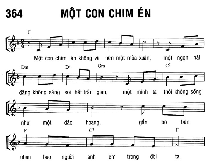 1. Một con chim én không về nên một mùa xuân, một ngọn hải đăng không sáng soi hết trần gian, một mình ta thôi không sống như một đảo hoang, gắn bó bên nhau bao người anh em trong đời ta.