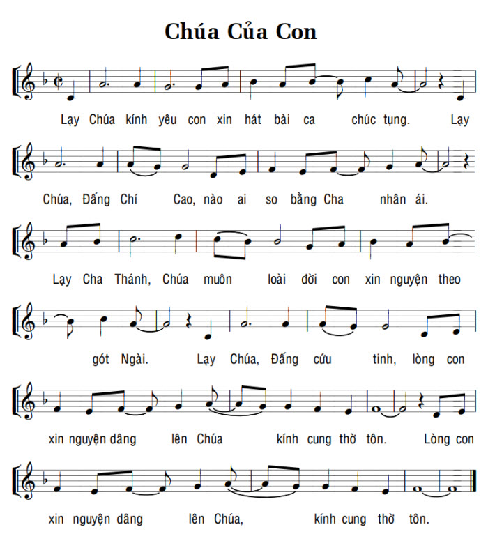 1. Lạy Chúa kính yêu con xin hát bài ca chúc tụng. Lạy Chúa, Đấng Chí Cao, nào ai so bằng Cha nhân ái. Lạy Cha Thánh, Chúa muôn loài đời con xin nguyện theo gót Ngài. Lạy Chúa, Đấng cứu tinh, lòng con xin nguyện dâng lên Chúa kính cung thờ tôn. Lòng con xin nguyện dâng lên Chúa, kính cung thờ tôn.