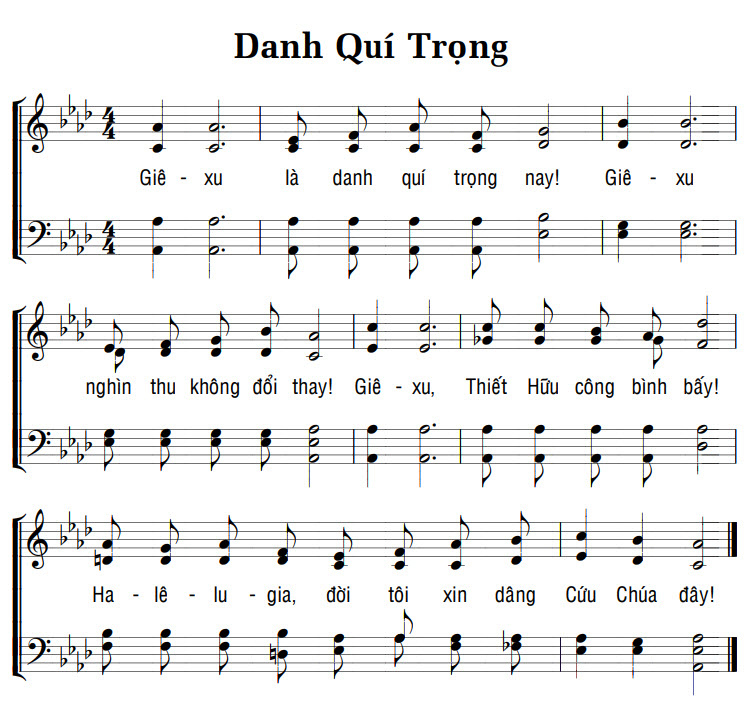 1. Giê-xu là danh quí trọng nay! Giê-xu nghìn thu không đổi thay! Giê-xu, Thiết Hữu công bình bấy! Ha-lê-lu-gia, đời tôi xin dâng Cứu Chúa đây!