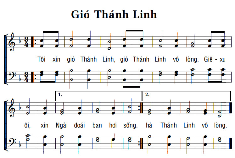 1. Tôi xin gió Thánh Linh, gió Thánh Linh vô lòng. Giê-xu ôi, xin Ngài đoái ban hơi sống. 2. Tôi xin gió Thánh Linh, gió Thánh Linh vô lòng. Giê-xu ôi, xin Ngài đoái ban hơi sống. hà Thánh Linh vô lòng.
