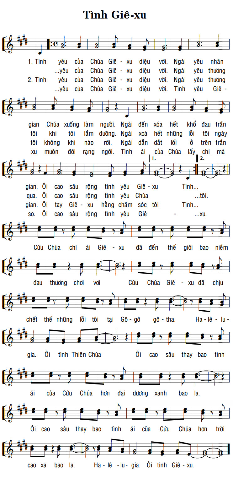 1. Tình yêu của Chúa Giê-xu diệu vời. Ngài yêu nhân gian Chúa xuống làm người. Ngài đến xóa hết khổ đau trần gian. Ôi cao sâu rộng tình yêu Giê-xu Tình... Cứu Chúa chí ái Giê-xu đã đến thế giới bao niềm đau thương chơi vơi Cứu Chúa Giê-xu đã chịu chết thế những lỗi tôi tại Gô-gô gô-tha. Ha-lê-lu-gia. Ôi tình Thiên Chúa Ôi cao sâu thay bao tình ái của Cứu Chúa hơn đại dương xanh bao la. Ôi cao sâu thay bao tình ái của Cứu Chúa hơn trời cao xa bao la. Ha-lê-lu-gia. Ôi tình Giê-xu. 2. Tình yêu của Chúa Giê-xu diệu vời. Ngài yêu thương tôi khi tôi lầm đường. Ngài xoá hết những lỗi tôi ngày qua. Ôi cao sâu rộng tình yêu Chúa ...tôi. Cứu Chúa chí ái Giê-xu đã đến thế giới bao niềm đau thương chơi vơi Cứu Chúa Giê-xu đã chịu chết thế những lỗi tôi tại Gô-gô gô-tha. Ha-lê-lu-gia. Ôi tình Thiên Chúa Ôi cao sâu thay bao tình ái của Cứu Chúa hơn đại dương xanh bao la. Ôi cao sâu thay bao tình ái của Cứu Chúa hơn trời cao xa bao la. Ha-lê-lu-gia. Ôi tình Giê-xu. Điệp khúc: yêu của Chúa Giê-xu diệu vời. Ngài yêu thương tôi không khi nào rời. Ngài dẫn dắt lối ở trên trần gian. Ôi tay Giê-xu hằng chăm sóc tôi Tình... yêu của Chúa Giê-xu diệu vời. Tình yêu Giê-xu muôn đời rạng ngời. Tình ái của Chúa lấy chi mà so. Ôi cao sâu rộng tình yêu Giê-xu. Cứu Chúa chí ái Giê-xu đã đến thế giới bao niềm đau thương chơi vơi Cứu Chúa Giê-xu đã chịu chết thế những lỗi tôi tại Gô-gô gô-tha. Ha-lê-lu-gia. Ôi tình Thiên Chúa Ôi cao sâu thay bao tình ái của Cứu Chúa hơn đại dương xanh bao la. Ôi cao sâu thay bao tình ái của Cứu Chúa hơn trời cao xa bao la. Ha-lê-lu-gia. Ôi tình Giê-xu.