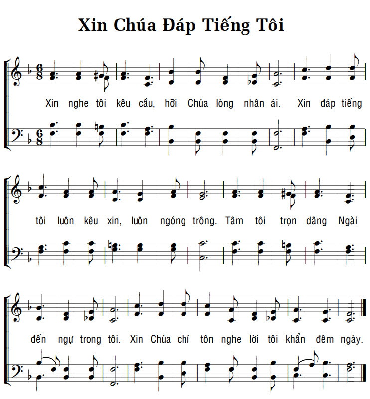 1. Xin nghe tôi kêu cầu, hỡi Chúa lòng nhân ái. Xin đáp tiếng tôi luôn kêu xin, luôn ngóng trông. Tâm tôi trọn dâng Ngài đến ngự trong tôi. Xin Chúa chí tôn nghe lời tôi khẩn đêm ngày.