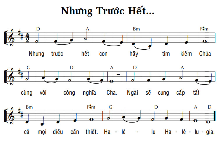 1. Nhưng trước hết con hãy tìm kiếm Chúa cùng với công nghĩa Cha. Ngài sẽ cung cấp tất cả mọi điều cần thiết. Ha-lê-lu Ha-lê-lu-gia.