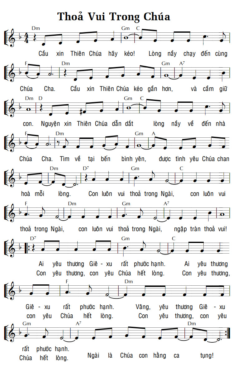 Điệp khúc: Cầu xin Thiên Chúa hãy kéo! Lòng nầy chạy đến cùng Chúa Cha. Cầu xin Thiên Chúa kéo gần hơn, và cầm giữ con. Nguyện xin Thiên Chúa dẫn dắt lòng nầy về đến nhà Chúa Cha. Tìm về tại bến bình yên, được tình yêu Chúa chan hoà mỗi lòng. Con luôn vui thoả trong Ngài, con luôn vui thoả trong Ngài, con luôn vui thoả trong Ngài, ngập tràn thoả vui! Ai yêu thương Giê Xu rất phước hạnh. Con yêu thương, con yêu Chúa hết lòng. Ai yêu thương Giê Xu rất phước hạnh. Vâng, yêu thương Giê Xu con yêu thương, con yêu Chúa hết lòng. Ngài là Chúa con hằng ca tụng!