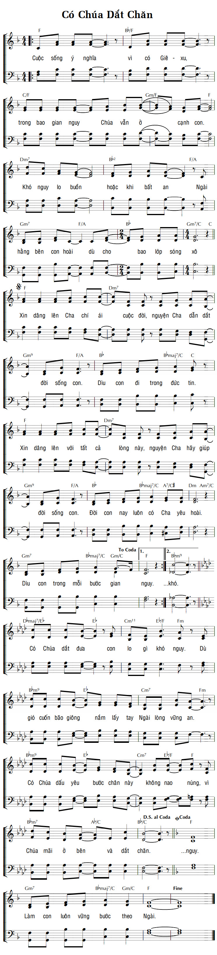 1. Cuộc sống ý nghĩa vì có Giê-xu, trong bao gian nguy Chúa vẫn ở cạnh con. Khó nguy lo buồn hoặc khi bất an Ngài hằng bên con hoài dù cho bao lớp sóng xô. Xin dâng lên Cha chí ái cuộc đời, nguyện Cha dẫn dắt đời sống con. Dìu con đi trong đức tin. Xin dâng lên với tất cả lòng này, nguyện Cha hãy giúp đời sống con. Đời con nay luôn có Cha yêu hoài. 2. Có Chúa dắt đưa con lo gì khó nguy. Dù gió cuốn bão giông nắm lấy tay Ngài lòng vững an. Có Chúa dấu yêu bước chân này không nao núng, vì Chúa mãi ở bên và dắt chăn. 3. Làm con luôn vững bước theo Ngài.