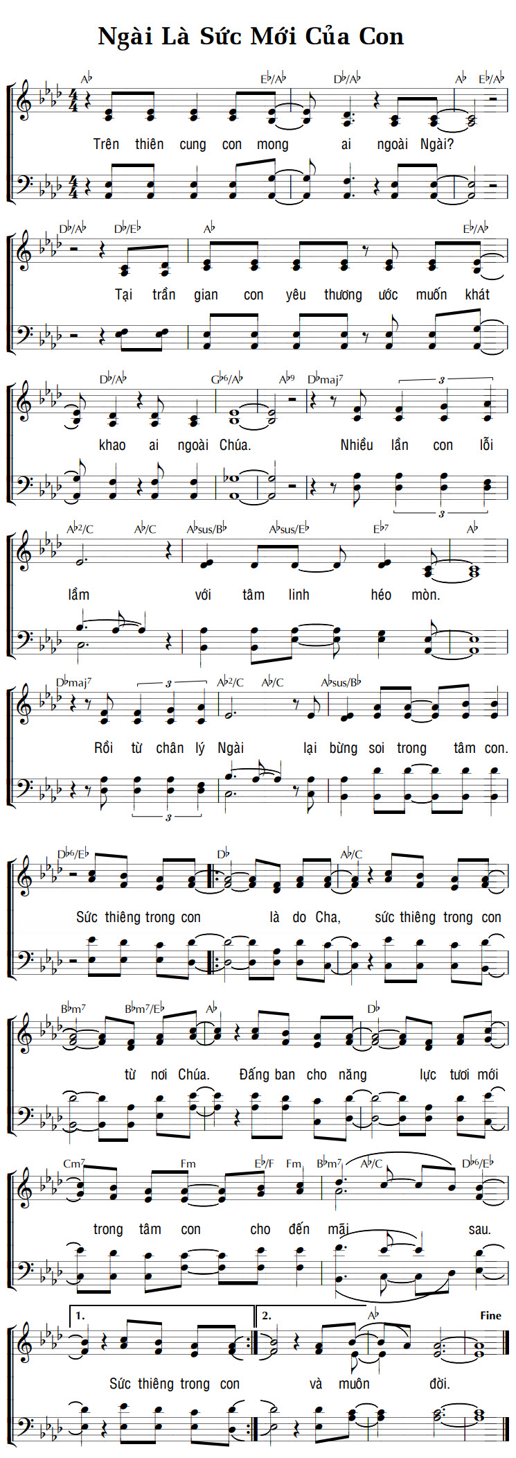 1. Trên thiên cung con mong ai ngoài Ngài? Tại trần gian con yêu thương ước muốn khát khao ai ngoài Chúa. Nhiều lần con lỗi lầm với tâm linh héo mòn. Rồi từ chân lý Ngài lại bừng soi trong tâm con. Sức thiêng trong con là do Cha, sức thiêng trong con từ nơi Chúa. Đấng ban cho năng lực tươi mới trong tâm con cho đến mãi sau. Sức thiêng trong con và muôn đời. 2. Sức thiêng trong con và muôn đời.
