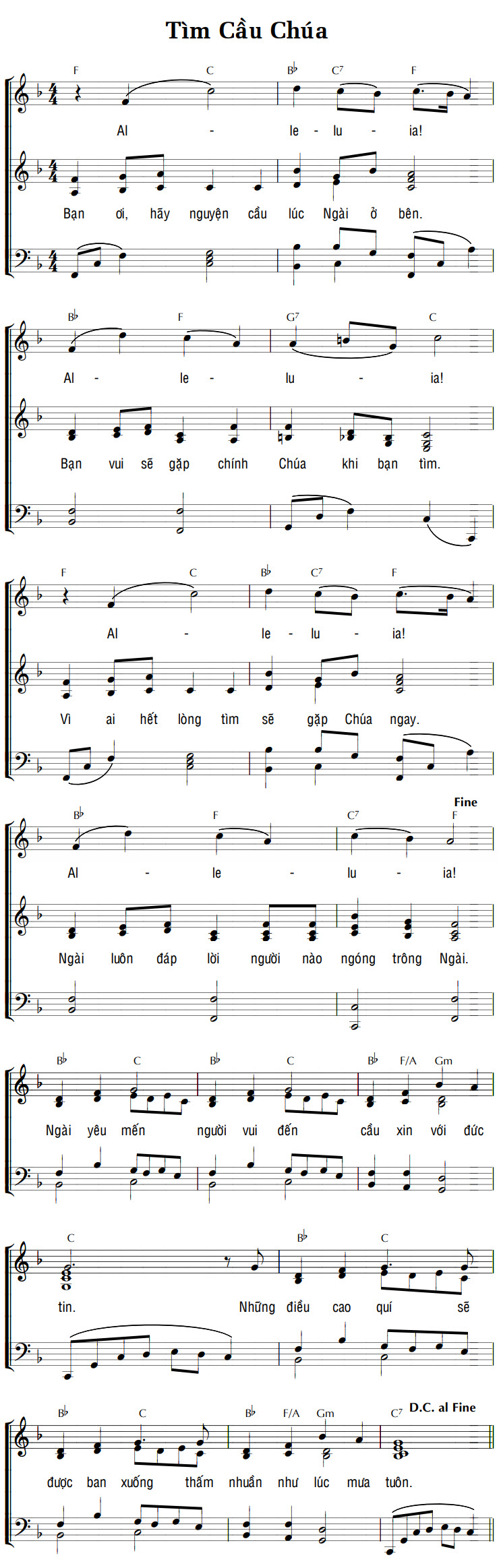 1. Bạn ơi, hãy nguyện cầu lúc Ngài ở bên. Bạn vui sẽ gặp chính Chúa khi bạn tìm. 2. Vì ai hết lòng tìm sẽ gặp Chúa ngay. Ngài luôn đáp lời người nào ngóng trông Ngài. 3. Ngài yêu mến người vui đến cầu xin với đức tin. Những điều cao quí sẽ được ban xuống thấm nhuần như lúc mưa tuôn. Điệp khúc: Al - le - lu - ia! Al - le - lu - ia! Al - le - lu - ia! Al - le - lu - ia!