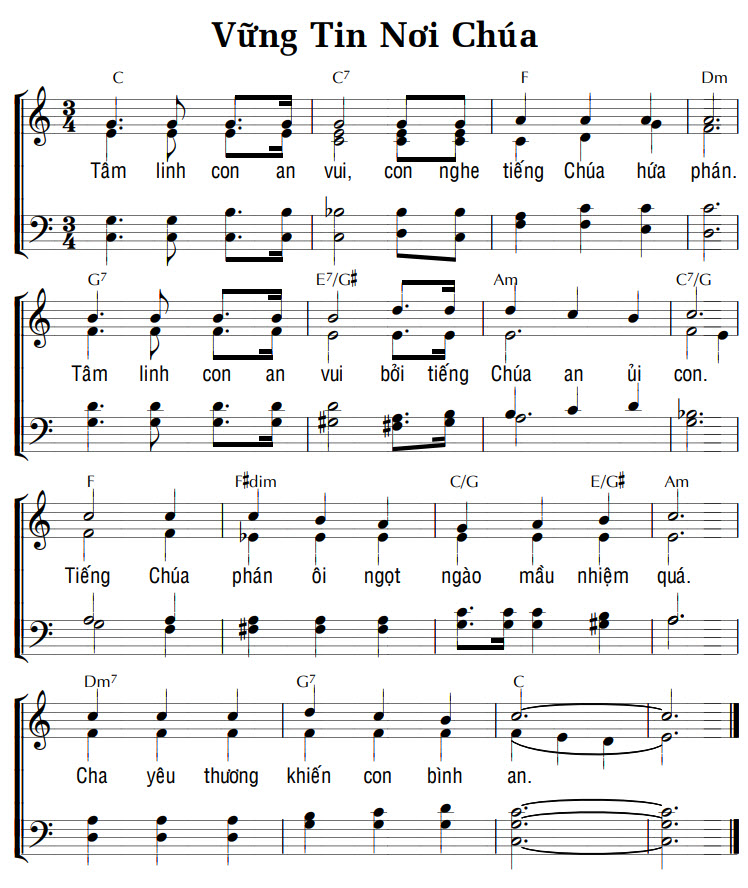 1. Tâm linh con an vui, con nghe tiếng Chúa hứa phán. Tâm linh con an vui bởi tiếng Chúa an ủi con. Tiếng Chúa phán ôi ngọt ngào mầu nhiệm quá. Cha yêu thương khiến con bình an.