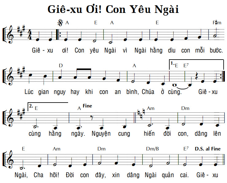 1. Giê-xu ơi! Con yêu Ngài vì Ngài hằng dìu con mỗi bước. Lúc gian nguy hay khi con an bình, Chúa ở cùng. Giê-xu 2. cùng hằng ngày. Nguyện cung hiến đời con, dâng lên Ngài, Cha hỡi! Đời con đây, xin dâng Ngài quản cai. Giê-xu