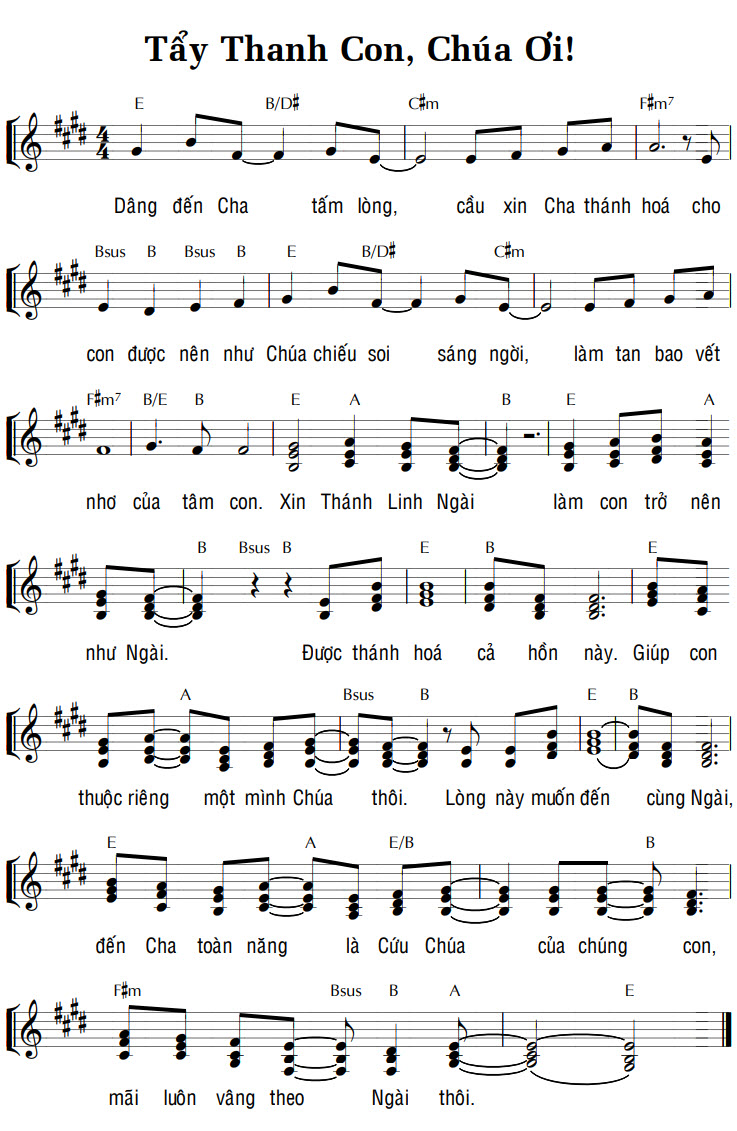 1. Dâng đến Cha tấm lòng, cầu xin Cha thánh hoá cho con được nên như Chúa chiếu soi sáng ngời, làm tan bao vết nhơ của tâm con. Xin Thánh Linh Ngài làm con trở nên như Ngài. Được thánh hoá cả hồn này. Giúp con thuộc riêng một mình Chúa thôi. Lòng này muốn đến cùng Ngài, đến Cha toàn năng là Cứu Chúa của chúng con, mãi luôn vâng theo Ngài thôi.
