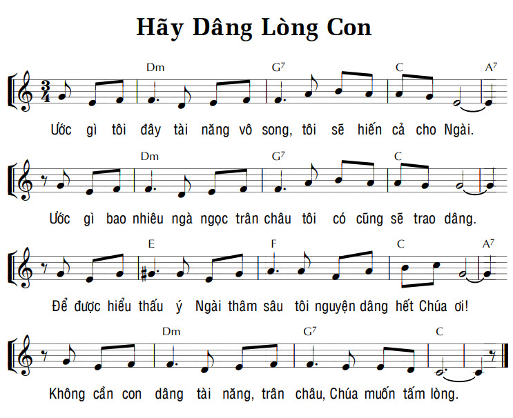 1. Ước gì tôi đây tài năng vô song, tôi sẽ hiến cả cho Ngài. Ước gì bao nhiêu ngà ngọc trân châu tôi có cũng sẽ trao dâng. Để được hiểu thấu ý Ngài thâm sâu tôi nguyện dâng hết Chúa ơi! Không cần con dâng tài năng, trân châu, Chúa muốn tấm lòng.