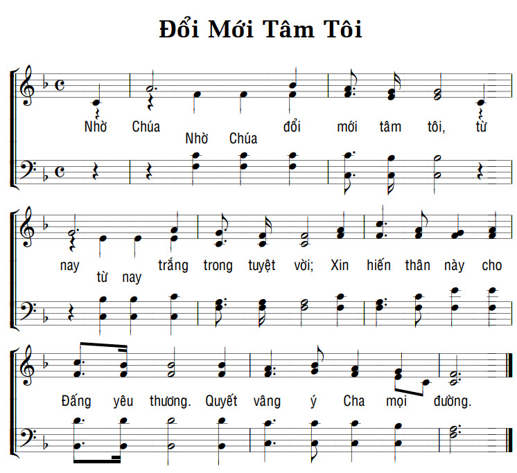 1. Nhờ Chúa đổi mới tâm tôi, từ nay trắng trong tuyệt vời; Xin hiến thân này cho Đấng yêu thương. Quyết vâng ý Cha mọi đường.