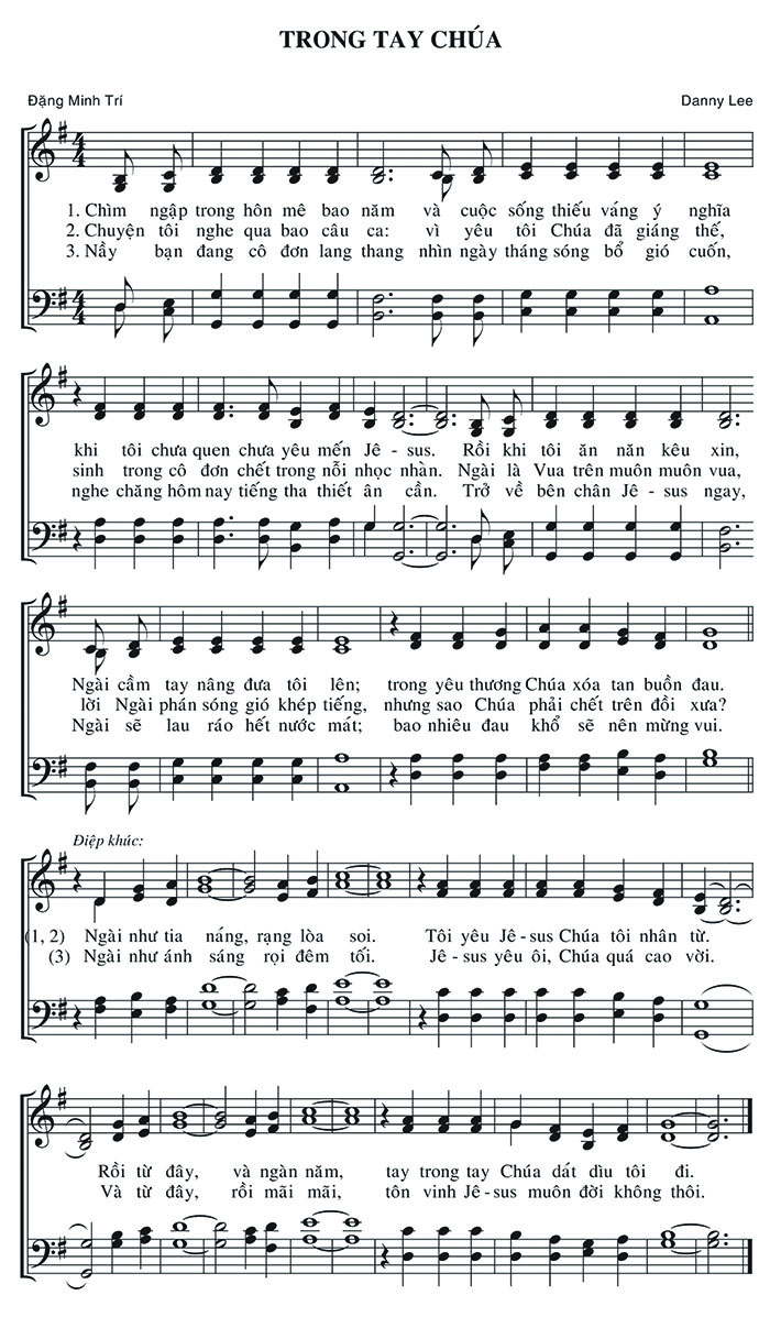 1. Chìm ngập trong hôn mê bao năm và cuộc sống thiếu vắng ý nghĩa khi tôi chưa quen chưa yêu mến Jê-sus. Rồi khi tôi ăn năn kêu xin, Ngài cầm tay nâng đưa tôi lên; trong yêu thương Chúa xóa tan buồn đau. Rồi từ đây, và ngàn năm, tay trong tay Chúa dắt dìu tôi đi. 2. Chuyện tôi nghe qua bao câu ca: vì yêu tôi Chúa đã giáng thế, sinh trong cô đơn chết trong nỗi nhọc nhàn. Ngài là Vua trên muôn muôn vua, lời Ngài phán sóng gió khép tiếng, nhưng sao Chúa phải chết trên đồi xưa? Và từ đây, rồi mãi mãi, tôn vinh Jê-sus muôn đời không thôi. 3. Nầy bạn đang cô đơn lang thang nhìn ngày tháng sóng bổ gió cuốn, nghe chăng hôm nay tiếng tha thiết ân cần. Trở về bên chân Jê-sus ngay, Ngài sẽ lau ráo hết nước mát; bao nhiêu đau khổ sẽ nên mừng vui. Điệp khúc: Ngài như tia nắng, rạng lòa soi. Tôi yêu Jê-sus Chúa tôi nhân từ. Ngài như ánh sáng rọi đêm tối. Jê-sus yêu ôi, Chúa quá cao vời.