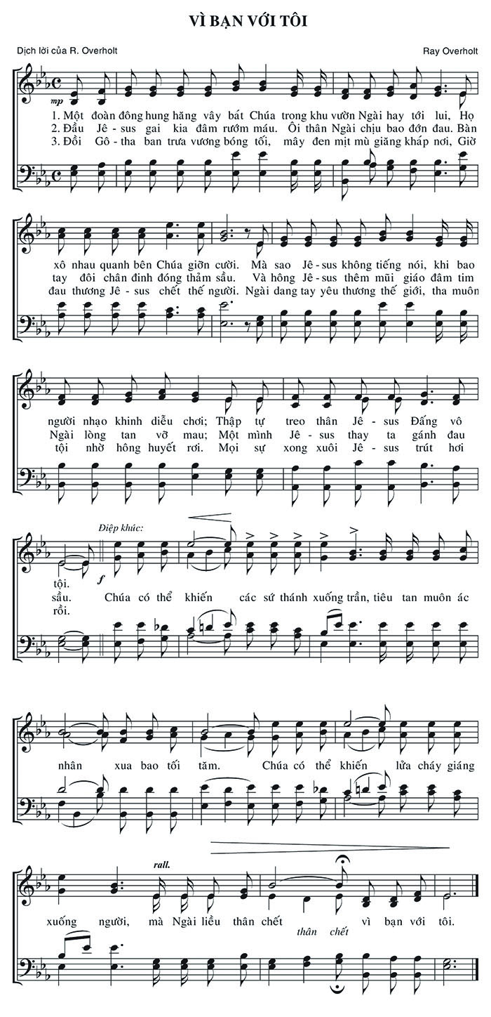 1. Một đoàn đông hung hăng vây bắt Chúa trong khu vườn Ngài hay tới lui, Họ xô nhau quanh bên Chúa giỡn cười. Mà sao Jê-sus không tiếng nói, khi bao người nhạo khinh diễu chơi; Thập tự treo thân Jê-sus Đấng vô tội. 2. Đầu Jê-sus gai kia đâm rướm máu. Ôi thân Ngài chịu bao đớn đau. Bàn tay đôi chân đinh đóng thảm sầu. Và hông Jê-sus thêm mũi giáo đâm tim Ngài lòng tan vỡ mau; Một mình Jê-sus thay ta gánh đau sầu. 3. Đồi Gô-tha ban trưa vương bóng tối, mây đen mịt mù giăng khắp nơi, Giờ đau thương Jê-sus chết thế người. Ngài dang tay yêu thương thế giới, tha muôn tội nhờ hông huyết rơi. Mọi sự xong xuôi Jê-sus trút hơi rồi. Điệp khúc: Chúa có thể khiến các sứ thánh xuống trần, tiêu tan muôn ác nhân xua bao tối tăm. Chúa có thể khiến lửa cháy giáng xuống người, mà Ngài liều thân chết thân chết vì bạn với tôi.