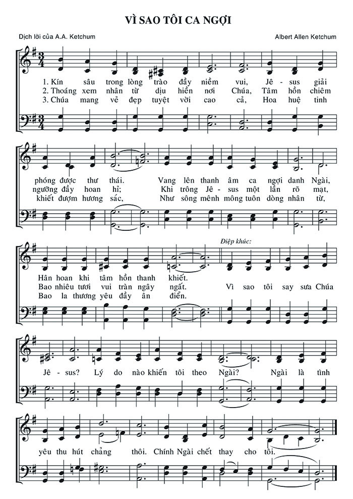 1. Kín sâu trong lòng trào đầy niềm vui, Jê-sus giải phóng được thư thái. Vang lên thanh âm ca ngợi danh Ngài, 2. Thoáng xem nhân từ dịu hiền nơi Chúa, Tâm hồn chiêm ngưỡng đầy hoan hỉ: Khi trông Jê-sus một lần rõ mạt, 3. Chúa mang vẻ đẹp tuyệt vời cao cả, Hoa huệ tinh khiết đượm hương sác, Như sông mênh mông tuôn dòng nhân từ, Điệp khúc: Hân hoan khi tâm hồn thanh khiết. Bao nhiêu tươi vui tràn ngây ngất. Bao la thương yêu đầy ân điển. Vì sao tôi say sưa Chúa Jê-sus? Lý do nào khiến tôi theo Ngài? Ngài là tình yêu thu hút chẳng thôi. Chính Ngài chết thay cho tôi.