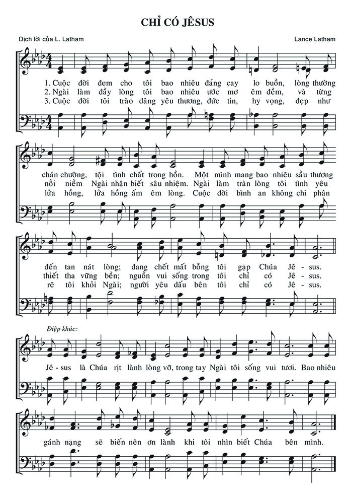 1. Cuộc đời đem cho tôi bao nhiêu đáng cay lo buồn, lòng thường chán chường, tội tình chất trong hồn. Một mình mang bao nhiêu sầu thương đến tan nát lòng; đang chết mất bỗng tôi gặp Chúa Jê-sus. 2. Ngài làm đầy lòng tôi bao nhiêu ước mơ êm đềm, và từng nỗi niềm Ngài nhận biết sâu nhiệm. Ngài làm tràn lòng tôi tình yêu thiết tha vững bền; nguồn vui sống trong tôi chỉ có Jê-sus. 3. Cuộc đời tôi trào dâng yêu thương, đức tin, hy vọng, đẹp như lửa hồng, lửa hồng ấm êm lòng. Cuộc đời bình an không chỉ phân rẽ tôi khỏi Ngài; người yêu dấu bên tôi chỉ có Jê-sus. 4. Jê-sus là Chúa rịt lành lòng vỡ, trong tay Ngài tôi sống vui tươi. Bao nhiêu gánh nặng sẽ biến nên ơn lành khi tôi nhìn biết Chúa bên mình. Điệp khúc: Jê-sus là Chúa rịt lành lòng vỡ, trong tay Ngài tôi sống vui tươi. Bao nhiêu gánh nặng sẽ biến nên ơn lành khi tôi nhìn biết Chúa bên mình.