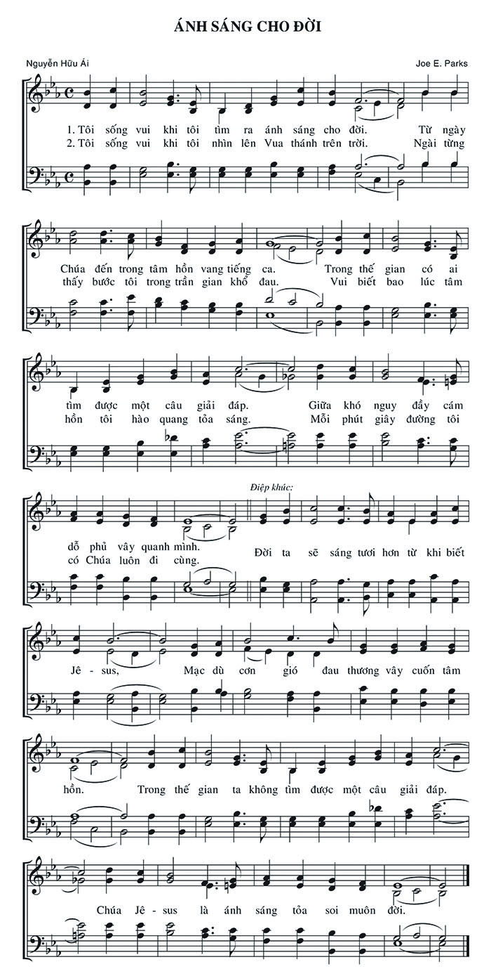 1. Tôi sống vui khi tôi tìm ra ánh sáng cho đời. Từ ngày Chúa đến trong tâm hồn vang tiếng ca. tìm được một câu giải đáp. Giữa khó nguy đầy cám dỗ phủ vây quanh mình. Mạc dù cơn gió đau thương vây cuốn tâm hồn. Trong thế gian ta không tìm được một câu giải đáp. 2. Tôi sống vui khi tôi nhìn lên Vua thánh trên trời. Ngài từng thấy bước tôi trong trần gian khổ đau. Vui biết bao lúc tâm hồn tôi hào quang tỏa sáng. Mỗi phút giây đường tôi có Chúa luôn đi cùng. Đời ta sẽ sáng tươi hơn từ khi biết Jê-sus, Chúa Jê-sus là ánh sáng tỏa soi muôn đời. Điệp khúc: Đời ta sẽ sáng tươi hơn từ khi biết Jê-sus, Mạc dù cơn gió đau thương vây cuốn tâm hồn. Trong thế gian ta không tìm được một câu giải đáp. Chúa Jê-sus là ánh sáng tỏa soi muôn đời.