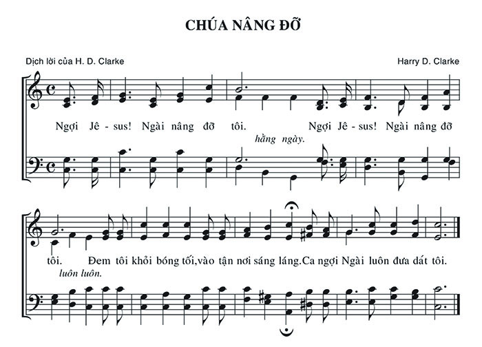 1. Ngợi Jê-sus! Ngài nâng đỡ tôi. hằng ngày. Ngợi Jê-sus! Ngài nâng đỡ tôi. Đem tôi khỏi bóng tối, vào tận nơi sáng láng. Ca ngợi Ngài luôn đưa dắt tôi. luôn luôn.