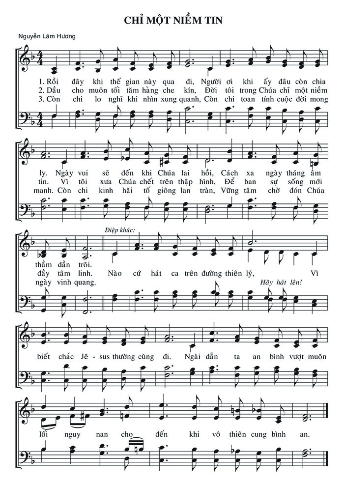 1. Rồi đây khi thế gian này qua đi, Người ơi khi ấy đâu còn chia ly. Ngày vui sẽ đến khi Chúa lai hồi, Cách xa ngày tháng âm thầm dần trôi. 2. Dầu cho muôn tối tăm hàng che kín, Đời tôi trong Chúa chỉ một niềm tin. Vì tôi xưa Chúa chết trên thập hình, Để ban sự sống mới đầy tâm linh. 3. Còn chi lo nghĩ khi nhìn xung quanh, Còn chi toan tính cuộc đời mong manh. Còn chi kinh hãi tố giông lan tràn, Vững tâm chờ đón Chúa ngày vinh quang. 4. Nào cứ hát ca trên đường thiên lý, Hãy hát lên! Vì biết chắc Jê-sus thường cùng đi. Ngài dẫn ta an bình vượt muôn lối nguy nan cho đến khi vô thiên cung bình an. Điệp khúc: Nào cứ hát ca trên đường thiên lý, Hãy hát lên! Vì biết chắc Jê-sus thường cùng đi. Ngài dẫn ta an bình vượt muôn lối nguy nan cho đến khi vô thiên cung bình an.