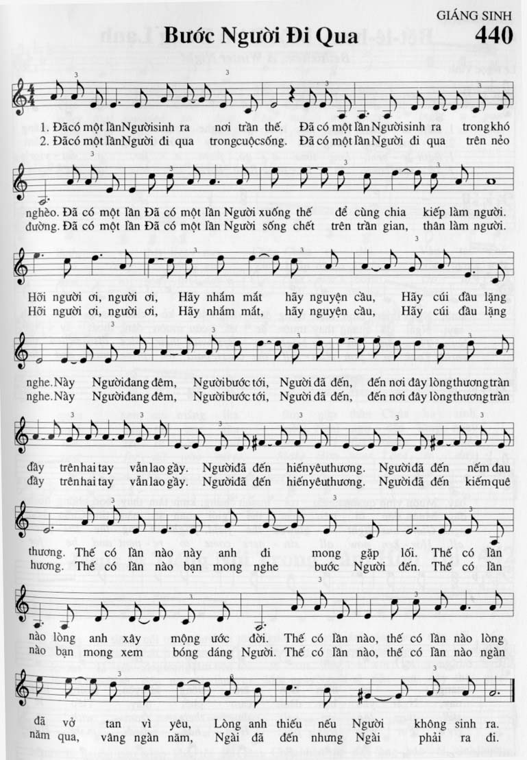 1. Đã có một lần Người sinh ra nơi trần thế. Đã có một lần Người sinh ra trong khó nghèo. Đã có một lần Đã có một lần Người xuống thế để cùng chia kiếp làm người. Hỡi người ơi, người ơi, Hãy nhắm mắt hãy nguyện cầu, Hãy cúi đầu lặng nghe. Này Người đang đêm, Người bước tới, Người đã đến, đến nơi đây lòng thương tràn đầy trên hai tay vẫn lao gầy. Người đã đến hiến yêu thương. Người đã đến nếm đau thương. Thế có lần nào này anh đi mong gặp lối. Thế có lần nào lòng anh xây mộng ước đời. Thế có lần nào, thế có lần nào lòng đã vỡ tan vì yêu, Lòng anh thiếu nếu Người không sinh ra. 2. Đã có một lần Người đi qua trong cuộc sống. Đã có một lần Người đi qua trên nẻo đường. Đã có một lần Đã có một lần Người sống chết trên trần gian, thân làm người. Hỡi người ơi, người ơi, Hãy nhắm mắt, hãy nguyện cầu, Hãy cúi đầu lặng nghe. Này Người đang đêm, Người bước tới, Người đã đến, đến nơi đây lòng thương tràn đầy trên hai tay vẫn lao gầy. Người đã đến hiến yêu thương. Người đã đến kiếm quê hương. Thế có lần nào bạn mong nghe bước Người đến. Thế có lần nào bạn mong xem bóng dáng Người. Thế có lần nào, thế có lần nào ngàn năm qua, vâng ngàn năm, Ngài đã đến nhưng Ngài phải ra đi.