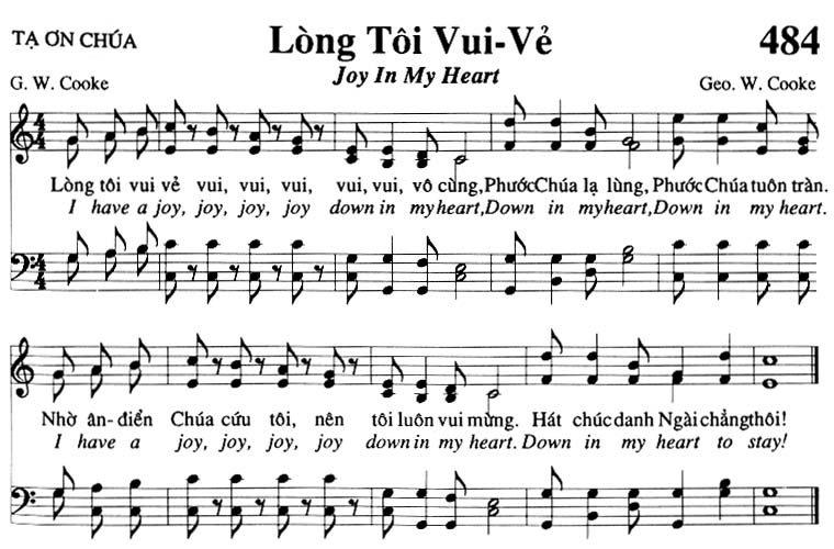 1. Lòng tôi vui vẻ vui, vui, vui, vui, vui, vô cùng, Phước Chúa lạ lùng, Phước Chúa tuôn tràn. Nhờ ân-điển Chúa cứu tôi, nên tôi luôn vui mừng. Hát chúc danh Ngài chẳng thôi!