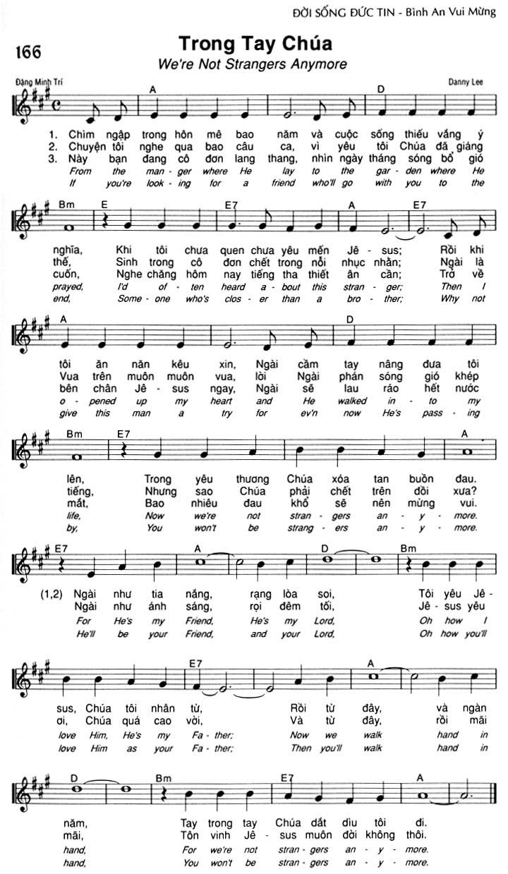 1. Chìm ngập trong hôn mê bao năm và cuộc sống thiếu vắng ý nghĩa, Khi tôi chưa quen chưa yêu mến Jê-sus; Rồi khi tôi ăn năn kêu xin, Ngài căm tay nâng đưa tôi lên, Trong yêu thương Chúa xóa tan buồn đau. Ngài như tia nắng, rạng lòa soi, Tôi yêu Jê-sus, Chúa tôi nhân từ, Rồi từ đây, và ngàn năm, Tay trong tay Chúa dắt dìu tôi đi. 2. Chuyện tôi nghe qua bao câu ca, vì yêu tôi Chúa đã giáng thế, Sinh trong cô đơn chết trong nỗi nhục nhằn; Ngài là Vua trên muôn muôn vua, lời Ngài phán sóng gió khép tiếng, Nhưng sao Chúa phải chết trên đồi xưa? Ngài như ánh sáng, roi đêm tối, Jê-sus yêu ơi, Chúa quá cao vời. Và từ đây, rồi mãi mãi, Tôn vinh Jê-sus muôn đời không thôi. 3. Này bạn đang cô đơn lang thang, nhìn ngày tháng sóng bồ gió cuốn, Nghe chăng hôm nay tiếng tha thiết ân cần; Trở về bên chân Jê-sus ngay, Ngài sẽ lau ráo hết nước mắt, Bao nhiêu đau khổ sẽ nên mừng vui. Ngài như tia nắng, rạng lòa soi, Tôi yêu Jê-sus, Chúa tôi nhân từ, Rồi từ đây, và ngàn năm, Tay trong tay Chúa dắt dìu tôi đi.