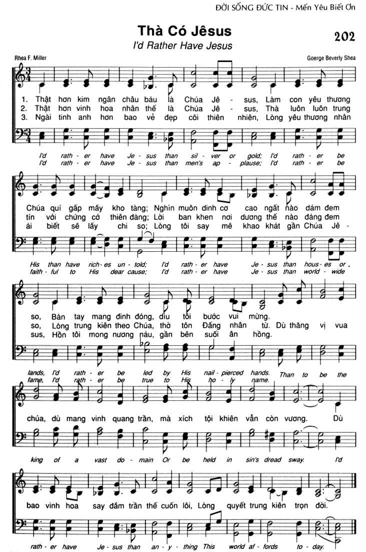 1. Thật hơn kim ngân châu báu là Chúa Jêsus, Làm con yêu thương Chúa quí gấp mấy kho tàng; Nghìn muôn dinh cơ cao ngất nào dám đem so, Bàn tay mang đinh đóng, dìu tôi bước vui mừng. chúa, dù mang vinh quang trần, mà xích tội khiên vẫn còn vương. 2. Thật hơn vinh hoa nhân thế là Chúa Jêsus, Thà luôn luôn trung tín với chứng cớ thiên đàng; Lời ban khen nơi dương thế nào đáng đem so, Lòng trung kiên theo Chúa, thờ tôn Đấng nhân từ. Dù thăng vị vua bao vinh hoa say đắm trần thế cuốn lôi, Lòng quyết trung kiên trọn đời. 3. Ngài tình anh hơn bao vẻ đẹp cõi thiên nhiên, Lòng yêu thương nhân ái biết sẽ lấy chi so; Lòng tôi say mê khao khát gần Chúa Jêsus, Hồn tôi mong nương náu, gần bên suối ân hồng.