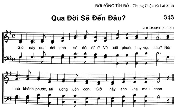 1. Giờ này qua đời anh sẽ đến đâu? Về cõi phước hay vực sâu? Nên nhớ khánh phước, tai ương luôn còn, Giờ này anh khá mau chọn.