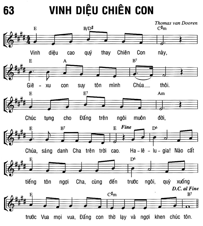1. Vinh diệu cao quý thay Chiên Con này, Giê-xu con suy tôn mình Chúa thôi. Chúc tụng cho Đấng trên ngôi muôn đời, Chúa, sáng danh Cha trên trời cao. Ha-lê-lu-gia! Nào cất tiếng tôn ngợi Cha, cùng đến trước ngôi, quỳ xuống trước Vua mọi vua, Đấng con thờ lạy và ngợi khen chúc tôn.