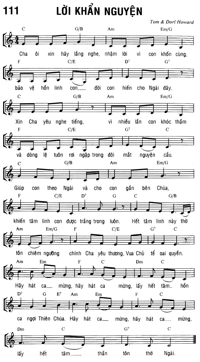 1. Cha ơi xin hãy lắng nghe, nhậm lời vì con khốn cùng, bảo vệ hồn linh con, đời con hiến cho Ngài đây. Xin Cha yêu nghe tiếng, vì nhiều lần con khóc thầm và dòng lệ tuôn rơi ngập trong đôi mắt nguyện cầu. Giúp con theo Ngài và cho con gần bên Chúa, khiến tâm linh con được trắng trong luôn. Hết tâm linh này thờ tôn chiêm ngưỡng chính Cha yêu thương, Vua Chủ tể oai quyền. Điệp khúc: Hãy hát ca mừng, hãy hát ca mừng, lấy hết tâm hồn ca ngợi Thiên Chúa. Hãy hát ca mừng, hãy hát ca mừng, lấy hết tâm thần tôn thờ Ngài.