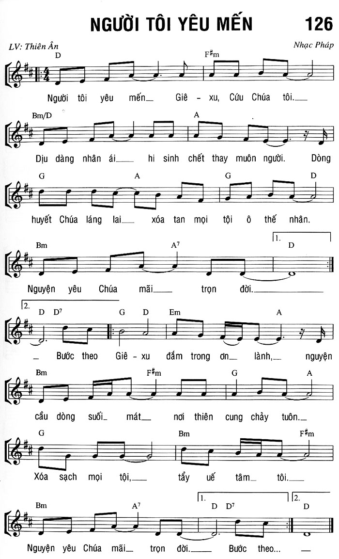1. Người tôi yêu mến Giê-xu, Cứu Chúa tôi. Dịu dàng nhân ái, hi sinh chết thay muôn người. Dòng huyết Chúa láng lai, xóa tan mọi tội ô thế nhân. Nguyện yêu Chúa mãi trọn đời. 2. Bước theo Giê-xu đắm trong ơn lành, nguyện cầu dòng suối mát nơi thiên cung chảy tuôn. Xóa sạch mọi tội, tẩy uế tâm tôi. Nguyện yêu Chúa mãi trọn đời. Bước theo...