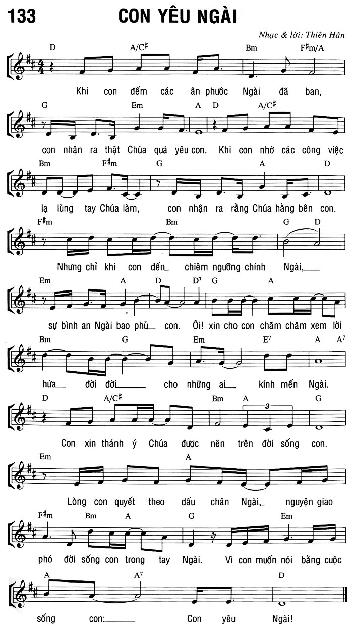 1. Khi con đếm các ân phước Ngài đã ban, con nhận ra thật Chúa quá yêu con. Khi con nhớ các công việc lạ lùng tay Chúa làm, con nhận ra rằng Chúa hằng bên con. Nhưng chỉ khi con đến chiêm ngưỡng chính Ngài, sự bình an Ngài bao phủ con. Ôi! xin cho con chăm chăm xem lời hứa đời đời cho những ai kính mến Ngài. Con xin thánh ý Chúa được nên trên đời sống con. Lòng con quyết theo dấu chân Ngài, nguyện giao phó đời sống con trong tay Ngài. Vì con muốn nói bằng cuộc sống con: Con yêu Ngài!