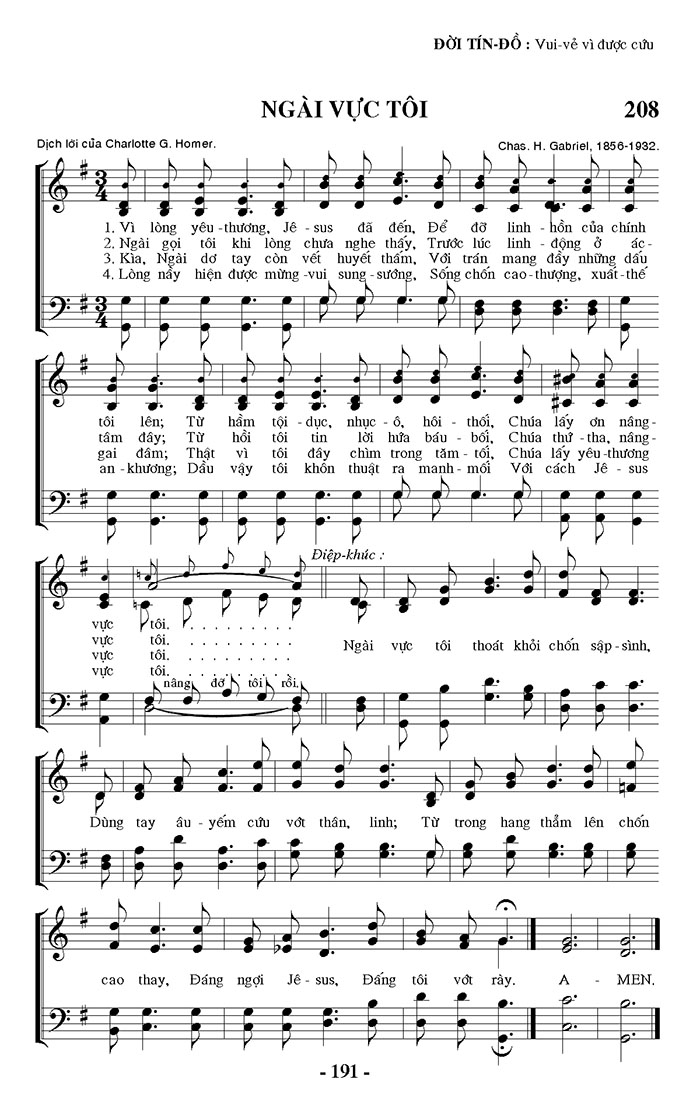 1. Vì lòng yêu thương, Jêsus đã đến, Để đỡ linh hồn của chính tôi lên; Từ hầm tội - dục, nhục - ô, hôi thối, Chúa lấy ơn nâng - tầm đây; Từ hồi tôi tin lời hứa báu bối, Chúa thứ tha, nâng - gai đâm; Thật vì tôi đây chìm trong tăm tối, Chúa lấy yêu thương an - khương; Dầu vậy tôi khôn thuật ra manh mối Với cách Jê sus 2. Ngài gọi tôi khi lòng chưa nghe thấy, Trước lúc linh động ở ác-tôi lên; Từ hầm tội - dục, nhục - ô, hôi thối, Chúa lấy ơn nâng - tầm đây; Từ hồi tôi tin lời hứa báu bối, Chúa thứ tha, nâng - gai đâm; Thật vì tôi đây chìm trong tăm tối, Chúa lấy yêu thương an - khương; Dầu vậy tôi khôn thuật ra manh mối Với cách Jê sus 3. Kìa, Ngài dơ tay còn vết huyết thấm, Với trán mang đầy những dấu tôi lên; Từ hầm tội - dục, nhục - ô, hôi thối, Chúa lấy ơn nâng - tầm đây; Từ hồi tôi tin lời hứa báu bối, Chúa thứ tha, nâng - gai đâm; Thật vì tôi đây chìm trong tăm tối, Chúa lấy yêu thương an - khương; Dầu vậy tôi khôn thuật ra manh mối Với cách Jê sus 4. Lòng nầy hiện được mừng vui sung sướng, Sống chốn cao thượng, xuất thế tôi lên; Từ hầm tội - dục, nhục - ô, hôi thối, Chúa lấy ơn nâng - tầm đây; Từ hồi tôi tin lời hứa báu bối, Chúa thứ tha, nâng - gai đâm; Thật vì tôi đây chìm trong tăm tối, Chúa lấy yêu thương an - khương; Dầu vậy tôi khôn thuật ra manh mối Với cách Jê sus Điệp khúc: Ngài vực tôi thoát khỏi chốn sập - sình, Dùng tay âu yếm cứu vớt thân, linh; Từ trong hang thẩm lên chốn cao thay, Đáng ngợi Jêsus, Đấng tôi vớt rày. A MEN.